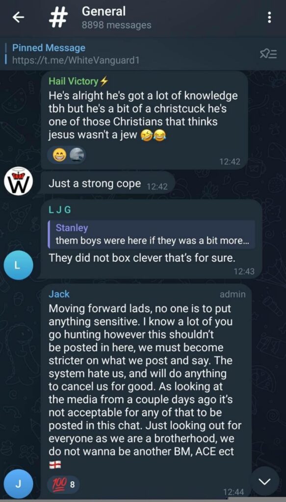 The new chat was created in March 2025 with a small core of activists. Despite a years long friendship, Max Cleeve would not be allowed in the new chat and would be stuck in Football Lads Protecting Britain.