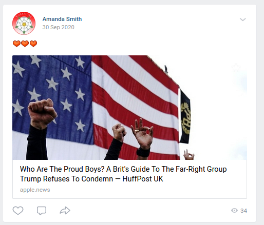 In July last year, Amanda promoted neo-Nazi Patriotic Alternative on her VK account.