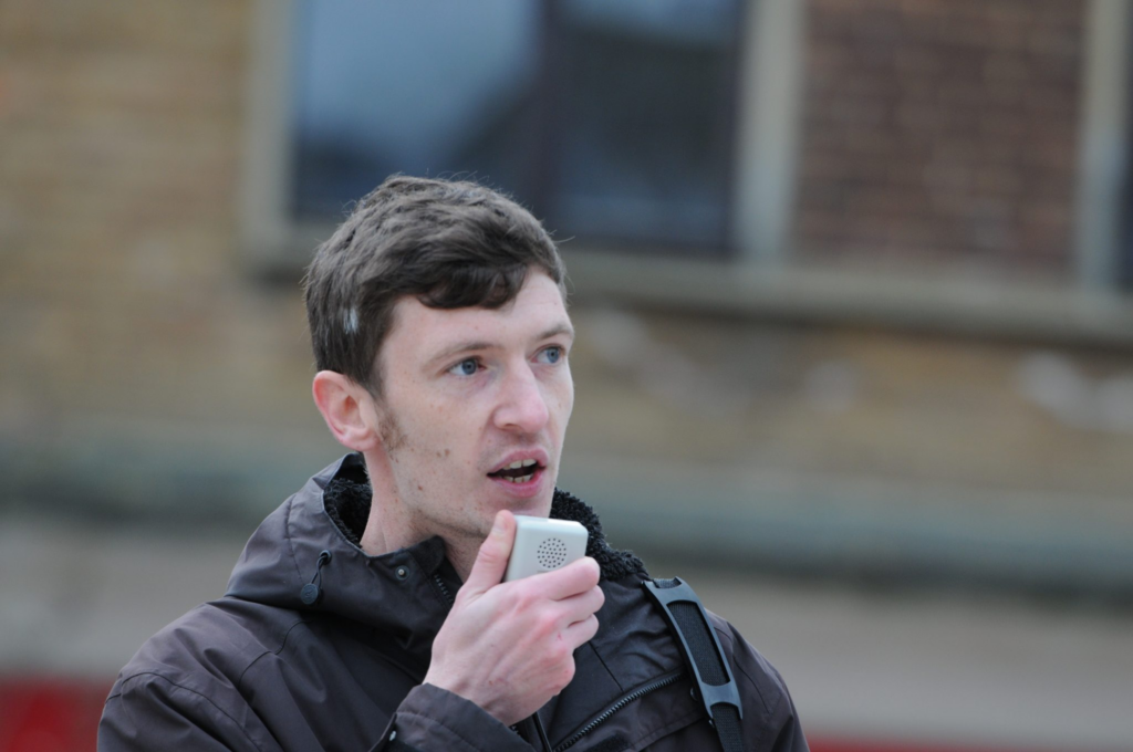 On 9 October 2020, Tracey had been loitering around Napier barracks filming again – patrolling the fence around the site, filming people through the mesh as they played in the car park with a football, and mocking them for “enjoying themselves”. Around 30 minutes in, Tracey attempted to film some volunteers bringing the residents some food (while clearly taking issue with it) — who protested at being filmed.